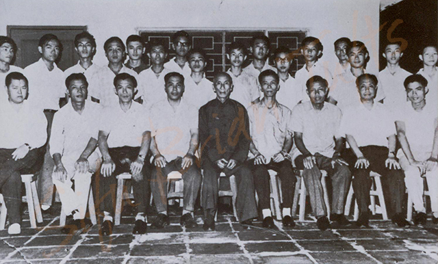 Yip Man (front, center), Ho Kam Ming (left of Yip Man), Augustine Fong {behind the person to the left of Ho Kam Ming (second row, checkered shirt)}